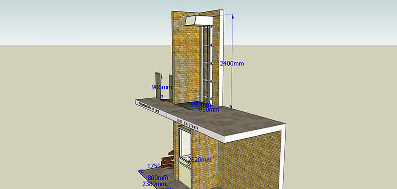 Seu Trilho Guia, que também serve de suporte para a Casa de Máquina, é fixado com uso de parafusos e buchas convencionais, presos em uma parede comum sem necessidade de construção de poço ou torre.